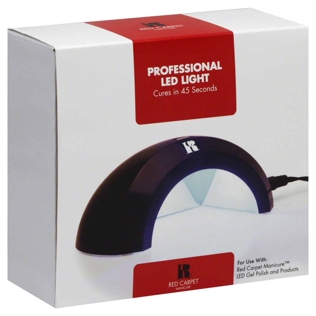 Red carpet manicure light pro 45 wattage. Cures four fingers at a time. Red carpet manicure uv gel nail polish available in an array of colors applies like polish with twist cap and applicator but cures in a led light in 45 seconds or in 3 minutes in traditional uv lamps just like gels. It quickly activates red carpet manicure s gel polishes base coat and top coat within seconds for high shine and long lasting results and can also be used with the red carpet ready one step manicure system. Red carpet manicure.