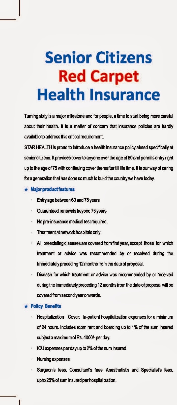 Star Health Senior Citizen Red Carpet Health Insurance