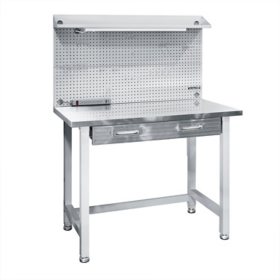 If you re looking for a sleek and sturdy work area the ultrahd lighted stainless steel top workbench offers a heavy duty surface for professional projects. The seville classics ultrahd workbench is 48 inches long 24 inches wide and 65 5 inches high. Featuring a 48 x 24 x 1 5 solid hardwood work surface it s great to use with most vices clamps table saws. Showing 1 12 of 26 results.